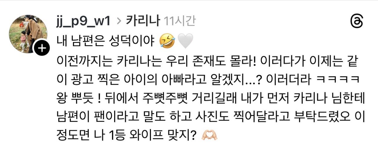 남편분과 카리나랑 사진 찍게 해준 1등 와이프 ㅋㅋㅋ 댓글 0 조회 559 2025-12-16 14:00 갓파 Lv.10 게시글 보기 총 게시글: 1,136개 총 댓글: 0개 갓파님의 다른 글 25.12.16 데어데블2 명장면 퍼니셔 법정 분노 장면 25.12.16 누구나 생각했지만 아무도 못꺼낸 드립 25.12.16 남사친이 많다는 소유의 허용 스킨쉽 25.12.16 백종원이 생각하는 부대찌개 필수재료