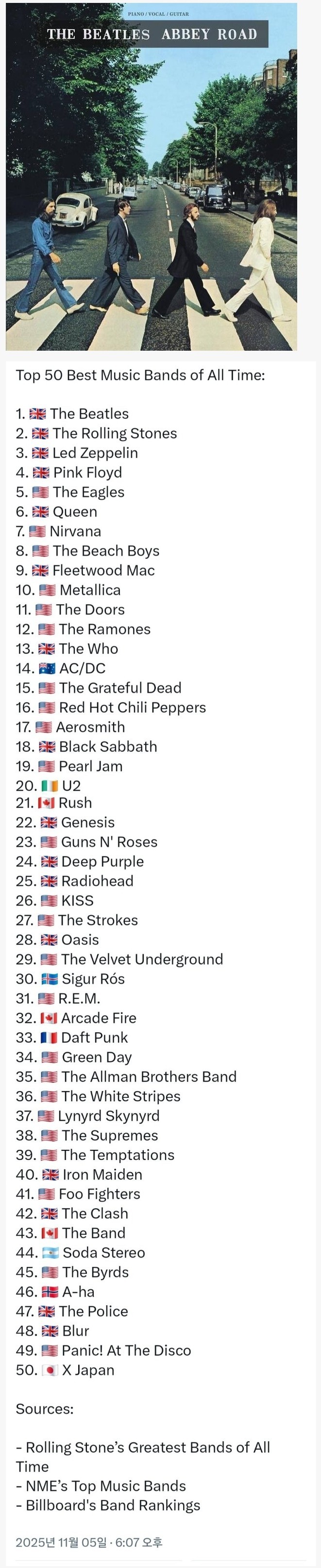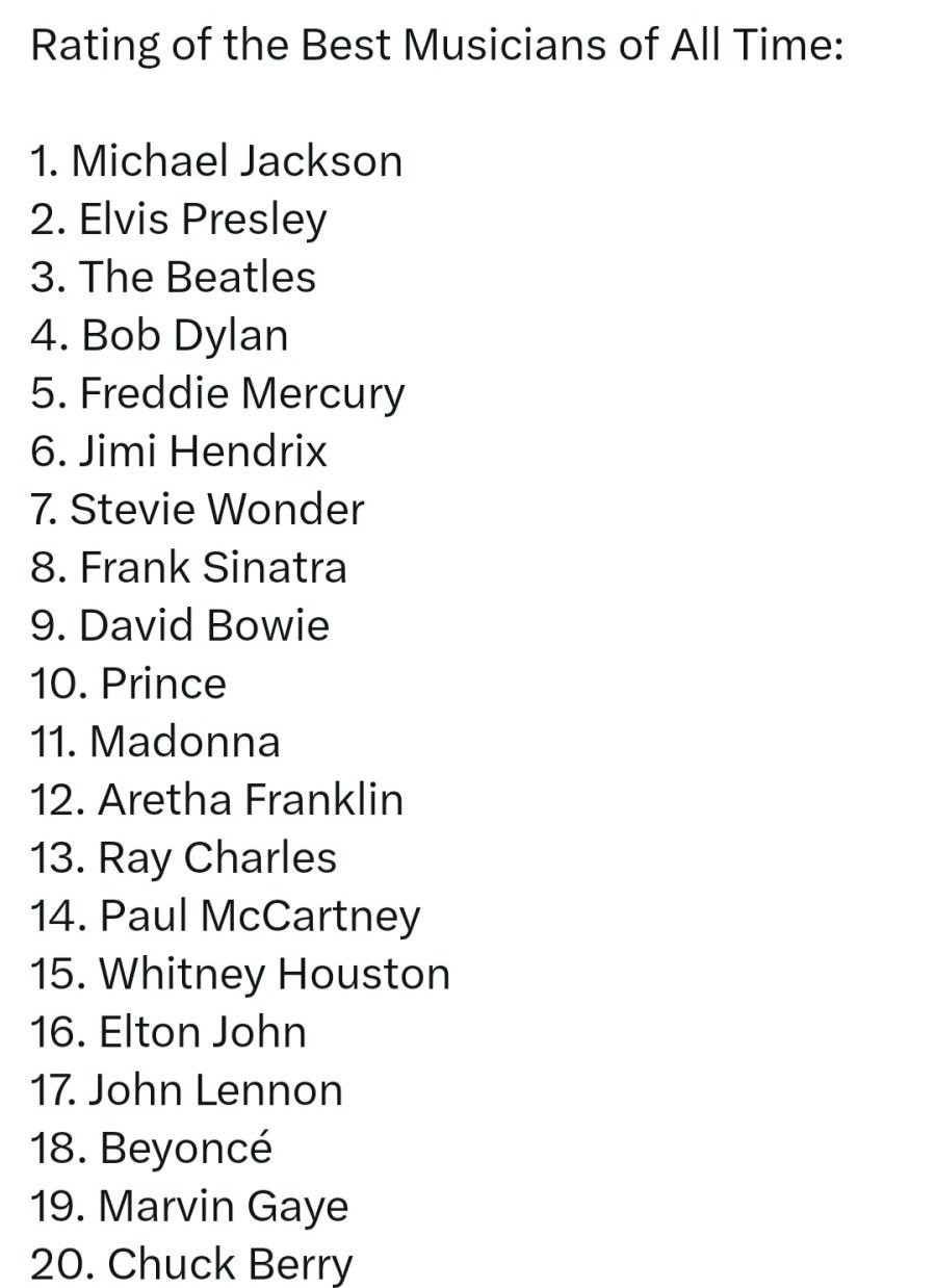 역사상 가장 위대한 음악가 & 밴드 순위