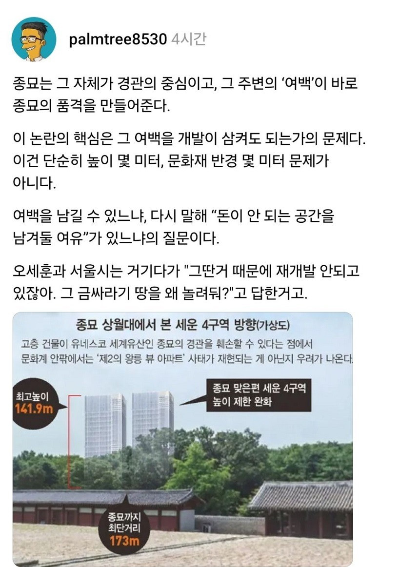 종묘 주변에 고층 건물이 들어서면 곤란한 이유