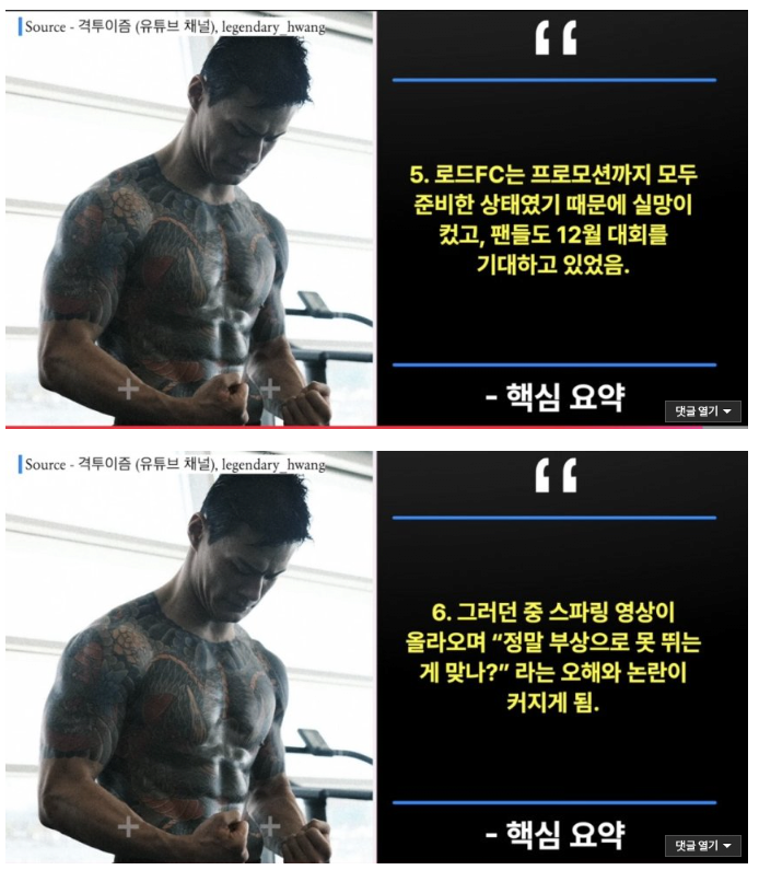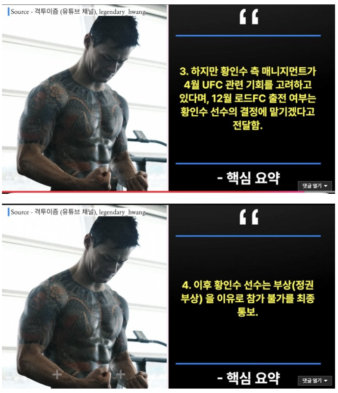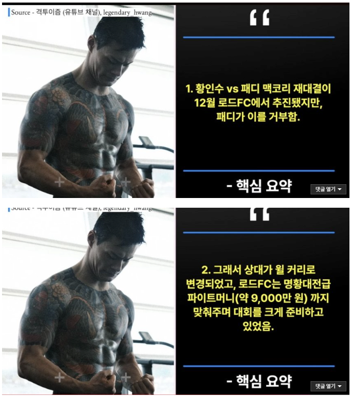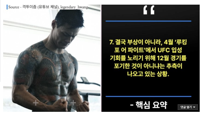 룩포파 경기에서 최원준VS황인수 2차전 추진한 정찬성 ㅋㅋ