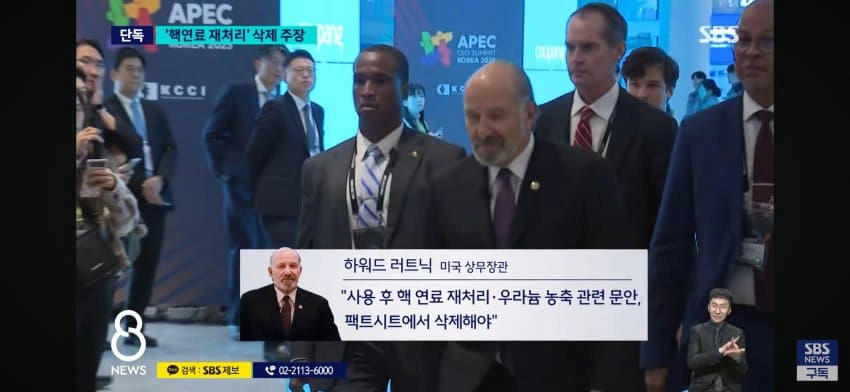 "한국 "핵연료 재처리" 삭제" 상무장관 러트닉 요구로 지연