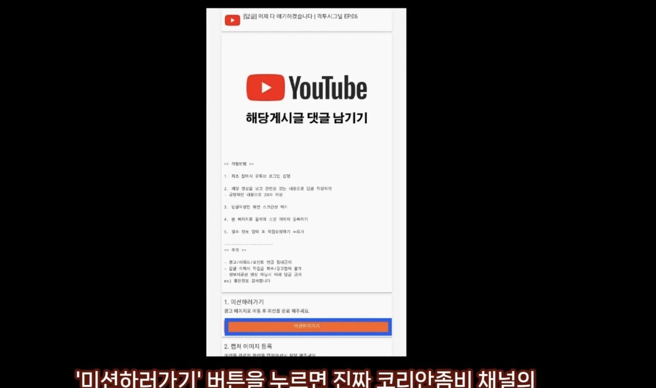 - 정찬성이 올린 영상 시청과 영상내에 20자로 관련 긍정적인 좋은 댓글쓰면 포인트(캐쉬)를 지급하는 앱테크 어플광고가 발견됨