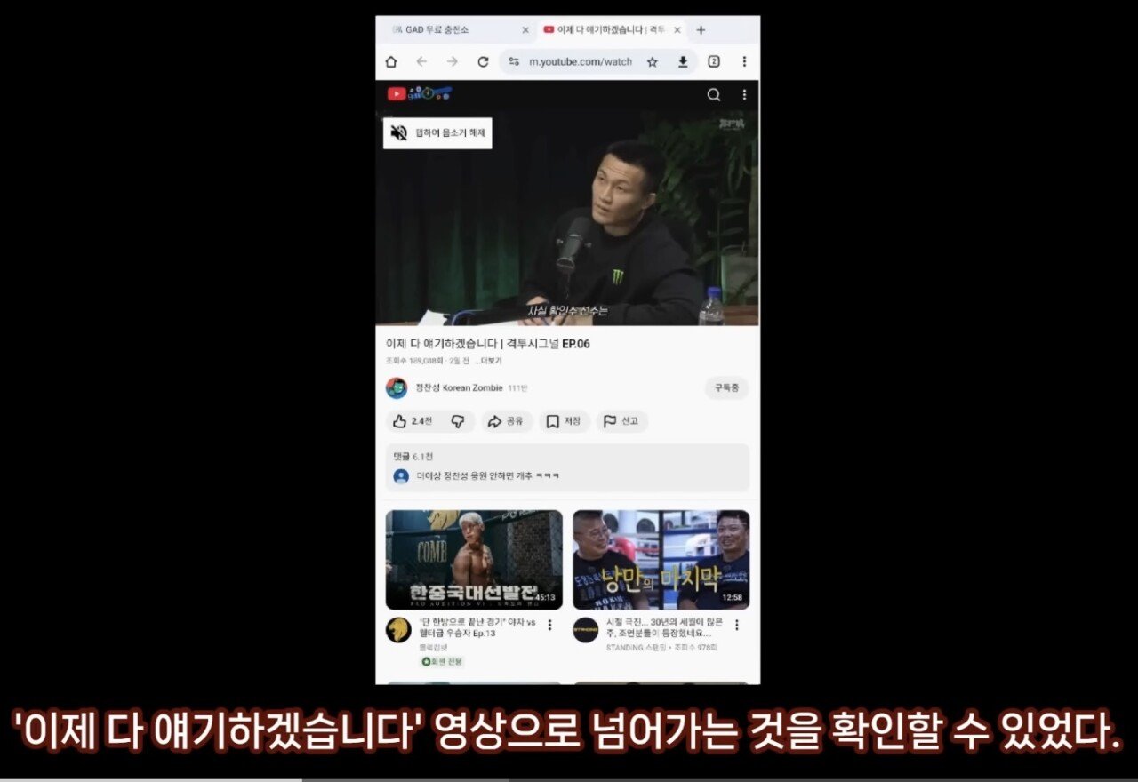 해당 유튜버인 사람이 거기에 긁혀서 ZFN 과 정찬성 영상에 대해 데이터 털어서 의혹제기를함