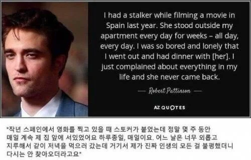 몇 주 동안 괴롭히던 스토커와 저녁 식사한 배우 썰
