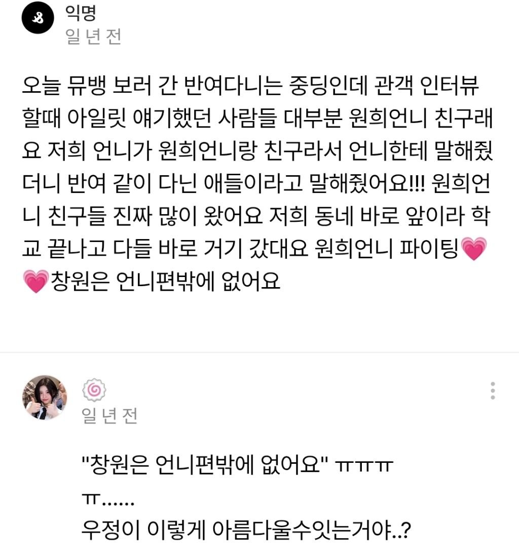 아일릿 원희 데뷔초 각종 비난 당할때 댓글 써준 동창들
