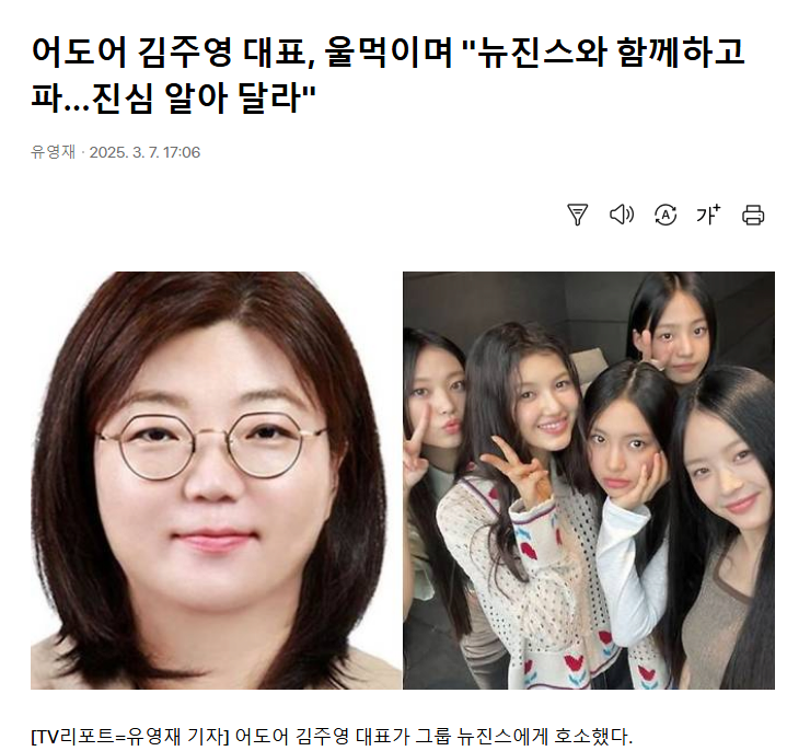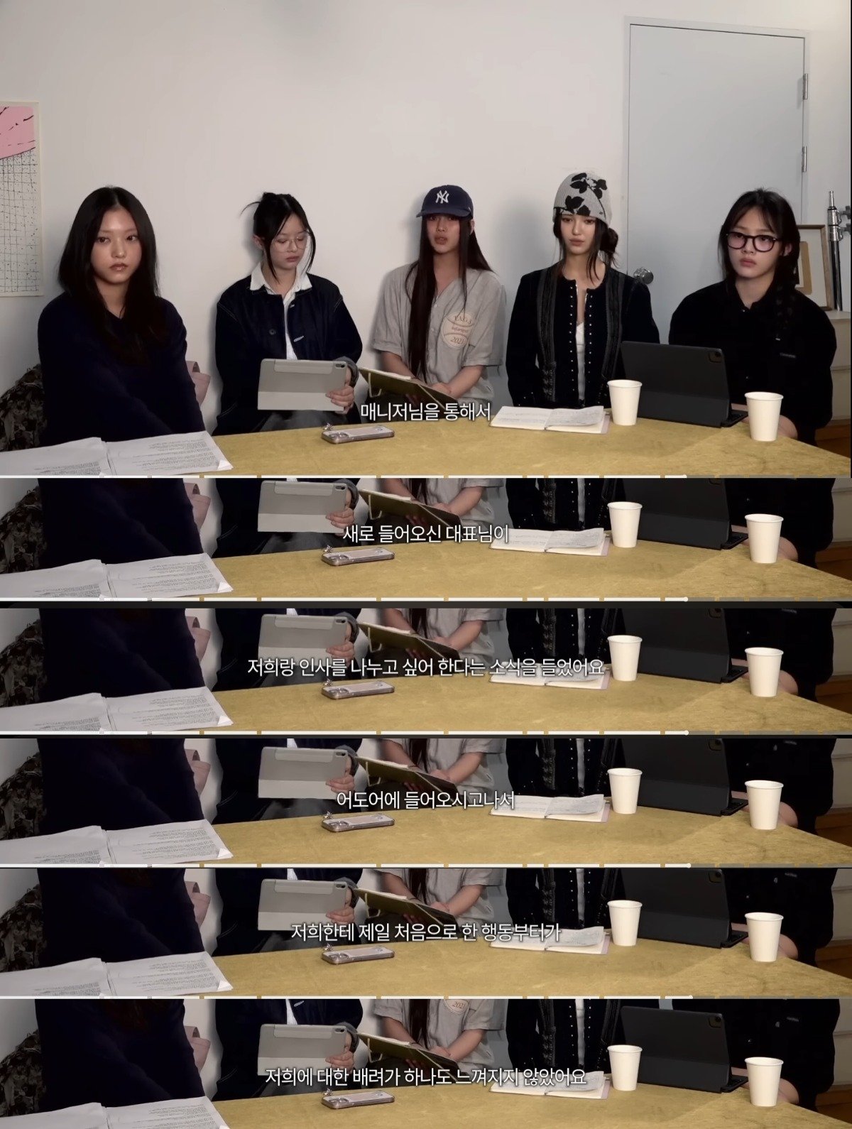 뉴진스한테 돌아오라고 호소 하는 김주영 대표 보고 자기들끼리 눈마주치며 웃참