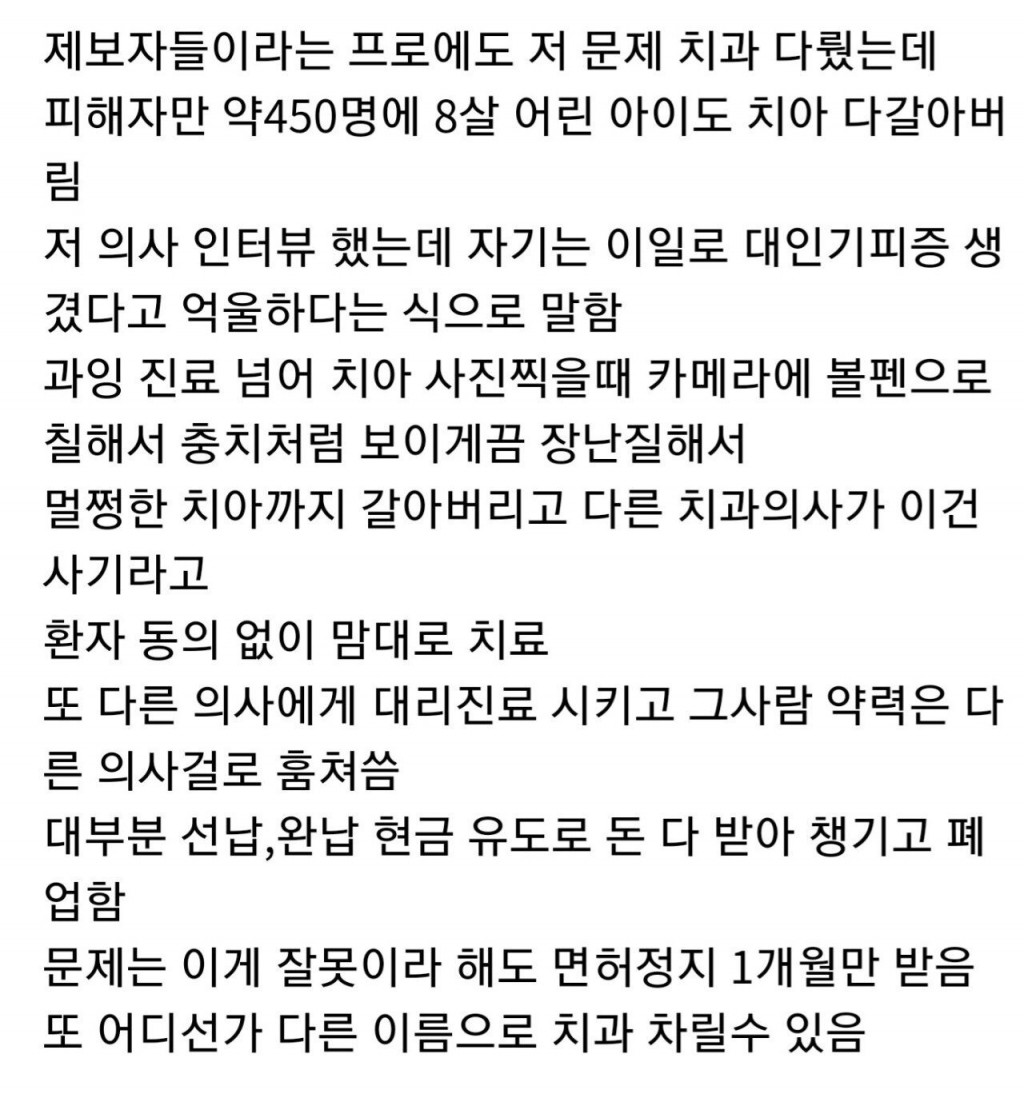 환자인생 다 망친 대한민국 치과의사