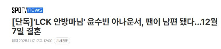 LCK 윤수빈 아나운서 결혼