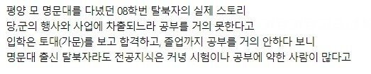 북한에서 명문대 나와도 전공지식이 떨어지는 이유