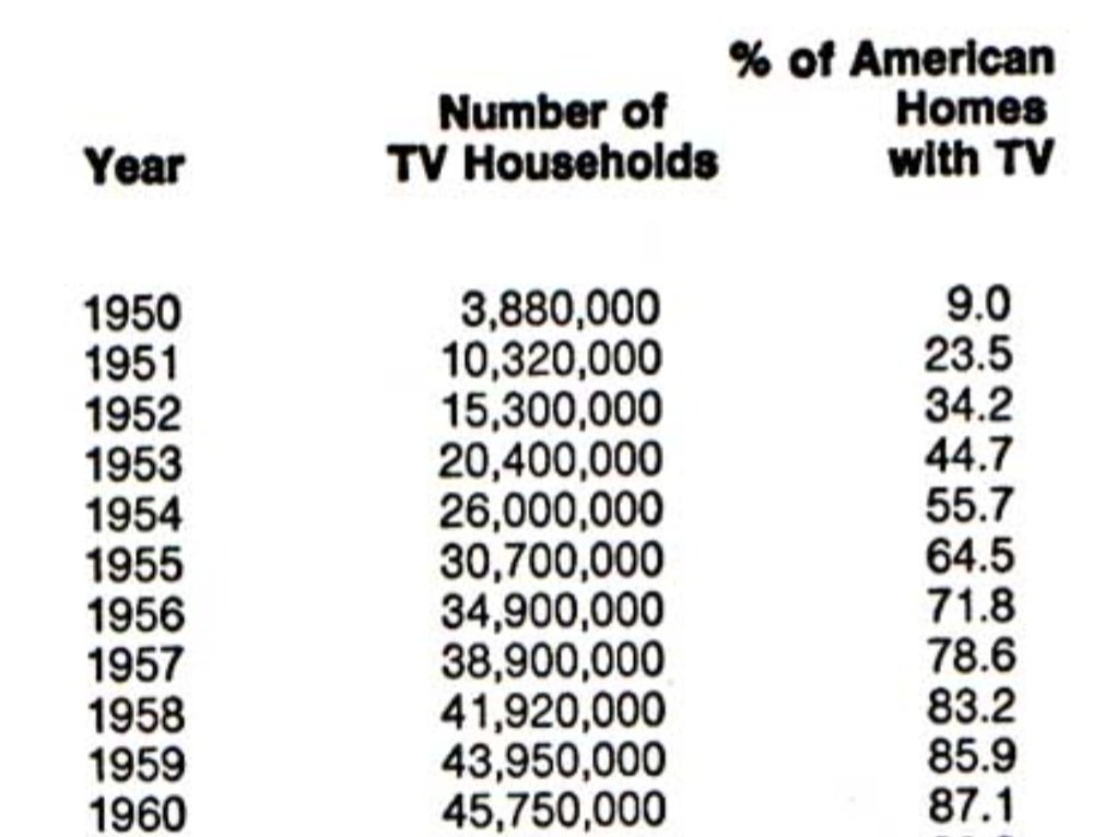 옛날이라 TV가 흔치 않았다는 주장도 신빙성이 떨어지는데 프랭키 라이몬이 TV에 처음 데뷔한 1956년 기준 미국 가구당 TV 보급률은 71%로 당시 미국에서 TV는 대중적인 매체였다.