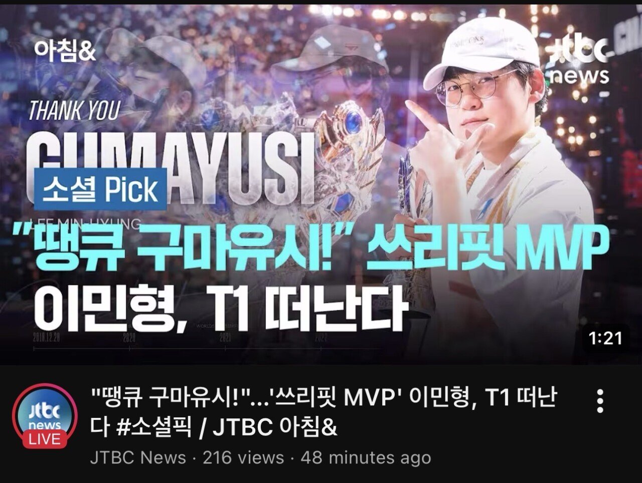 "땡큐 구마유시!"…"쓰리핏 MVP" 이민형, T1 떠난다