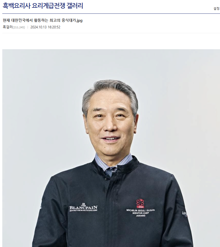 그 중 현존 대한민국 최고 중식대가로 후덕죽 쉐프 글이 개념글을 갔었음