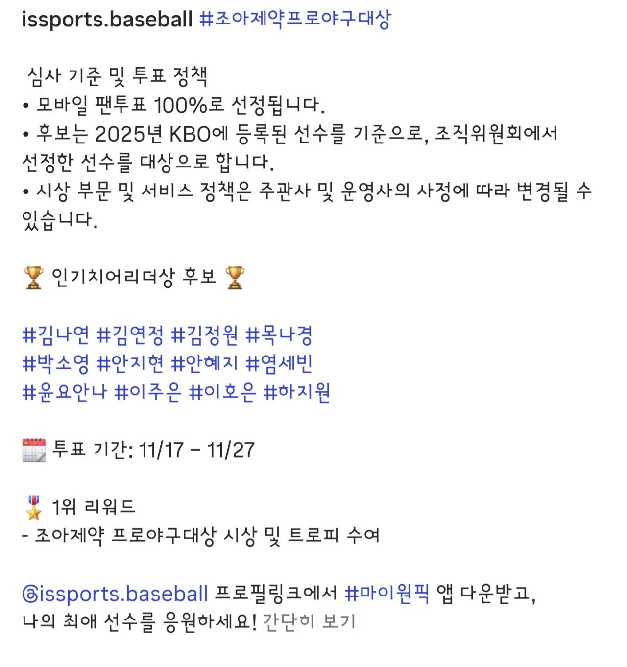 2025 프로야구대상 인기 치어리더상 후보 발표