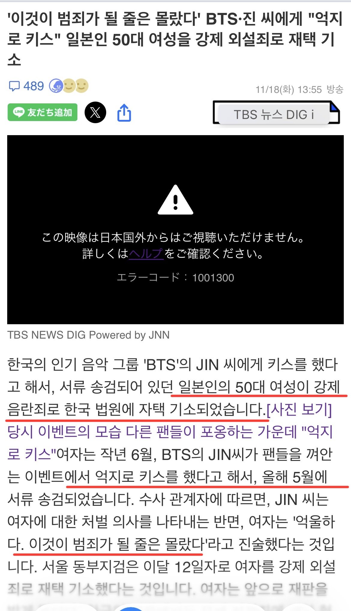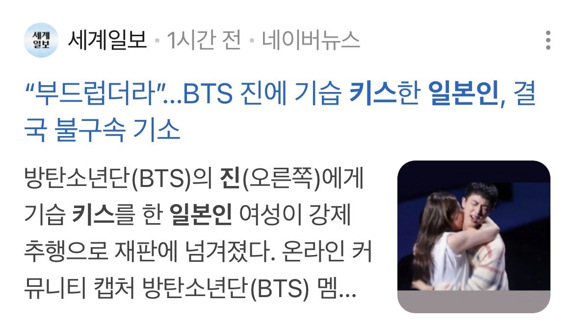 현재 난리났다는 50대 일본여성이 강제키스한 사건