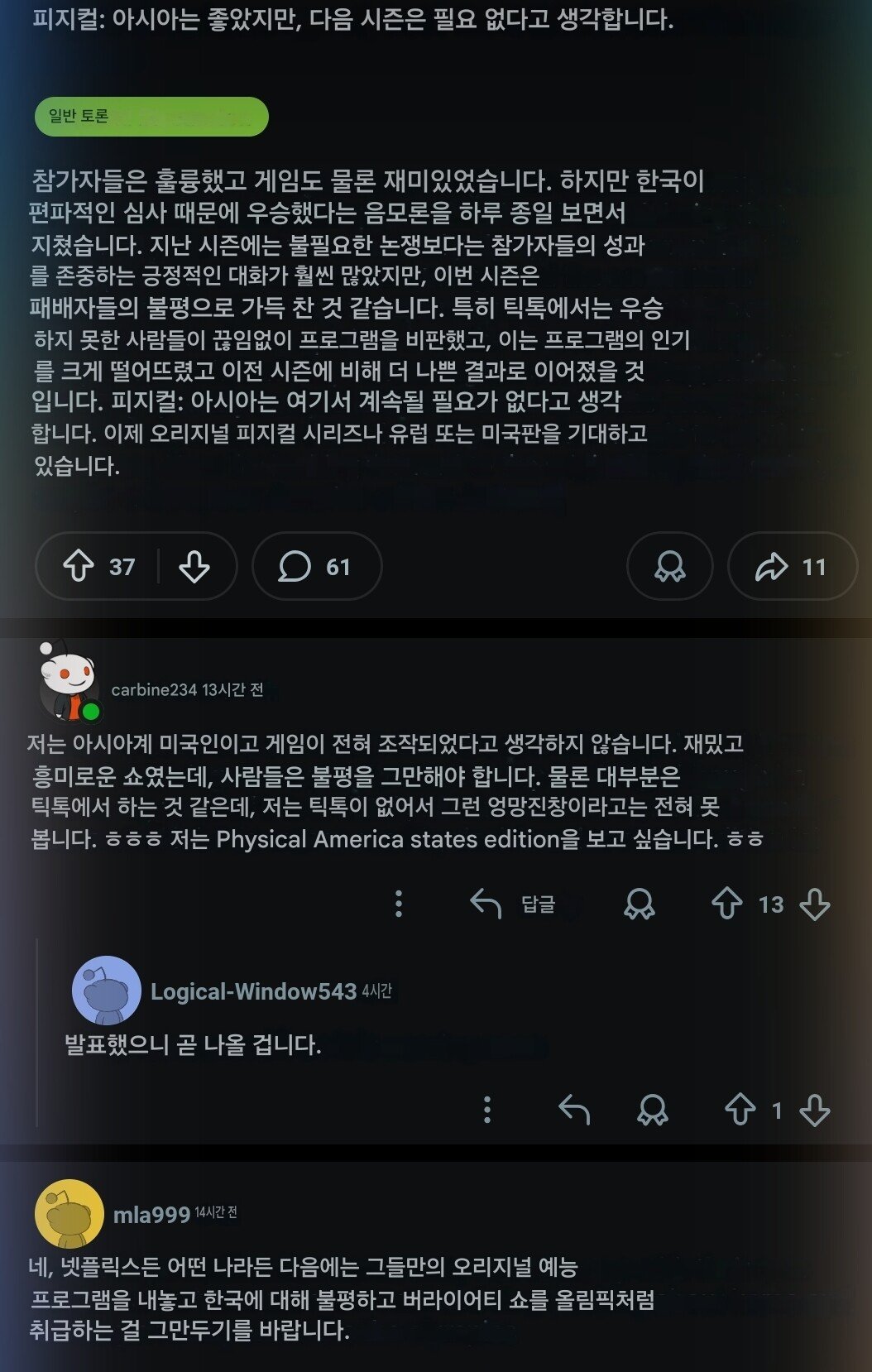 (스포) 해외에서 호평받고 있는 "피지컬 아시아" 레딧 반응