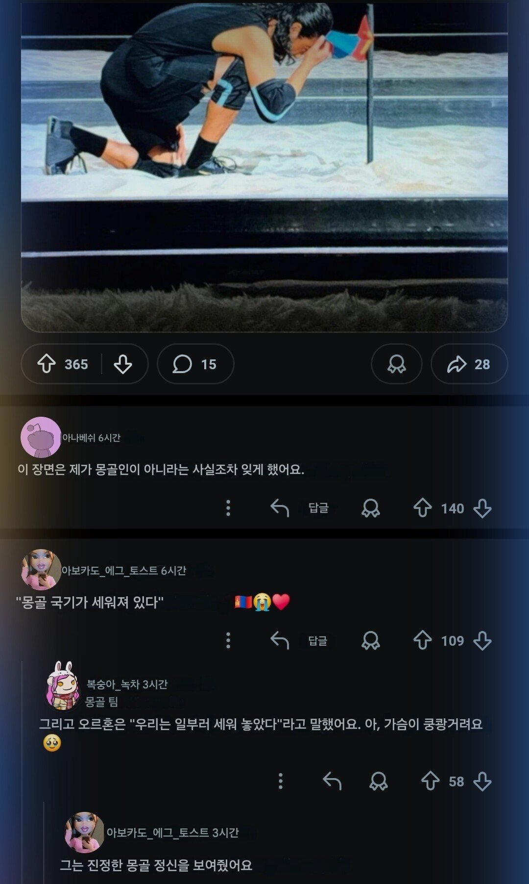 의외로 태양의 서커스 곡예사가 몽골팀 맏형임