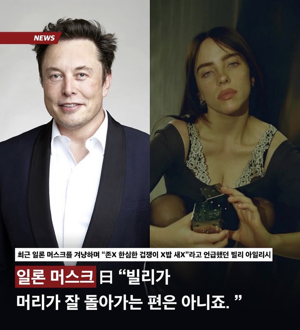 빌리 아일리시의 쌍욕에 답변한 일론 머스크