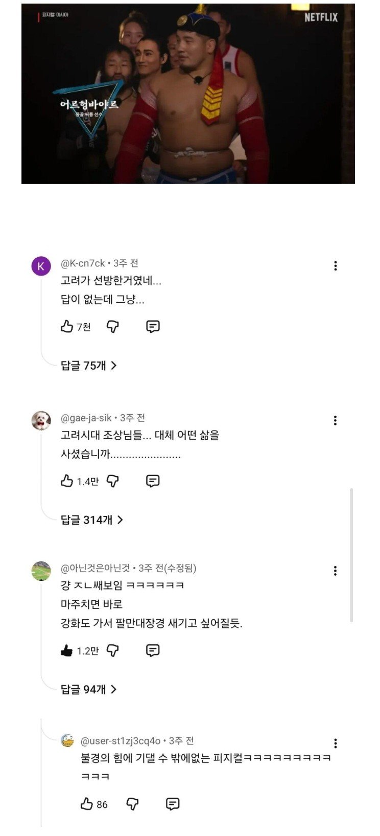피지컬 아시아 몽골팀 피지컬을 본 한국인들 댓글 반응