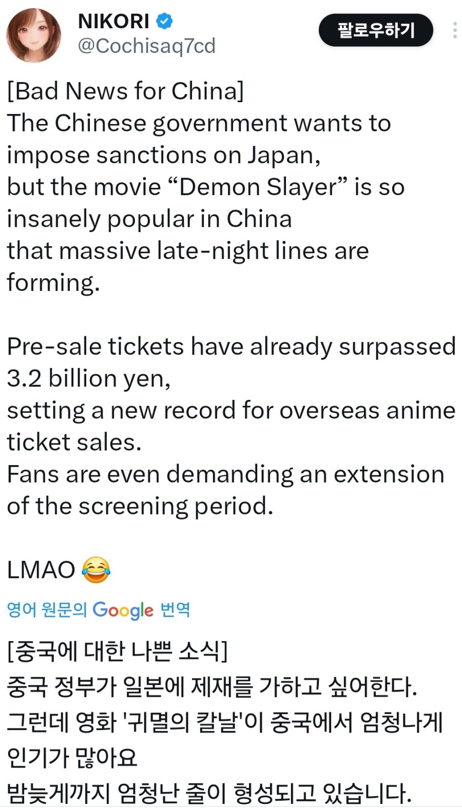 중국에서 귀멸의 칼날 인기 근황 ㄷㄷ