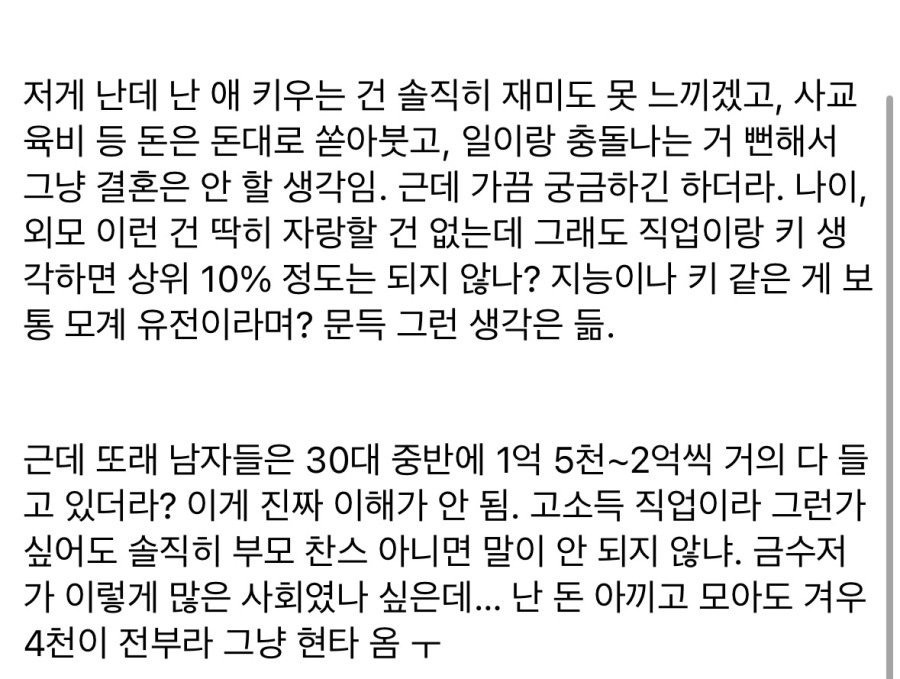 본인이 상위 10퍼센트라고 주장하는 33살 여성의 스펙