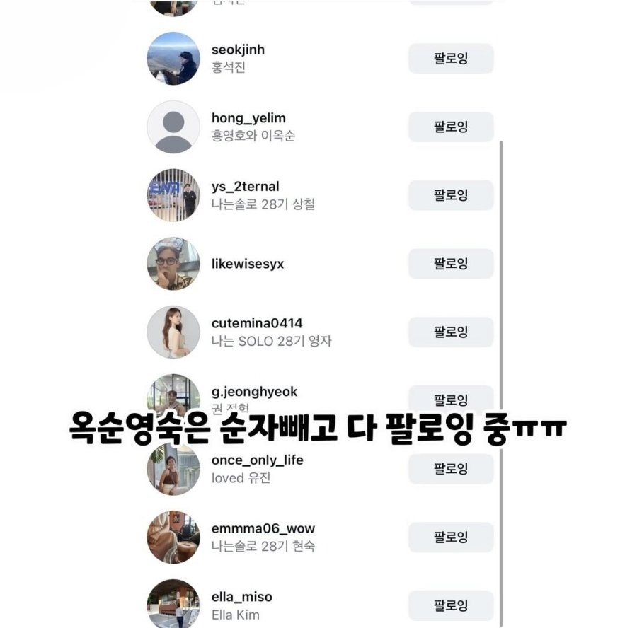 나는솔로) 28순자 정숙에 이어 옥순,영숙 언팔