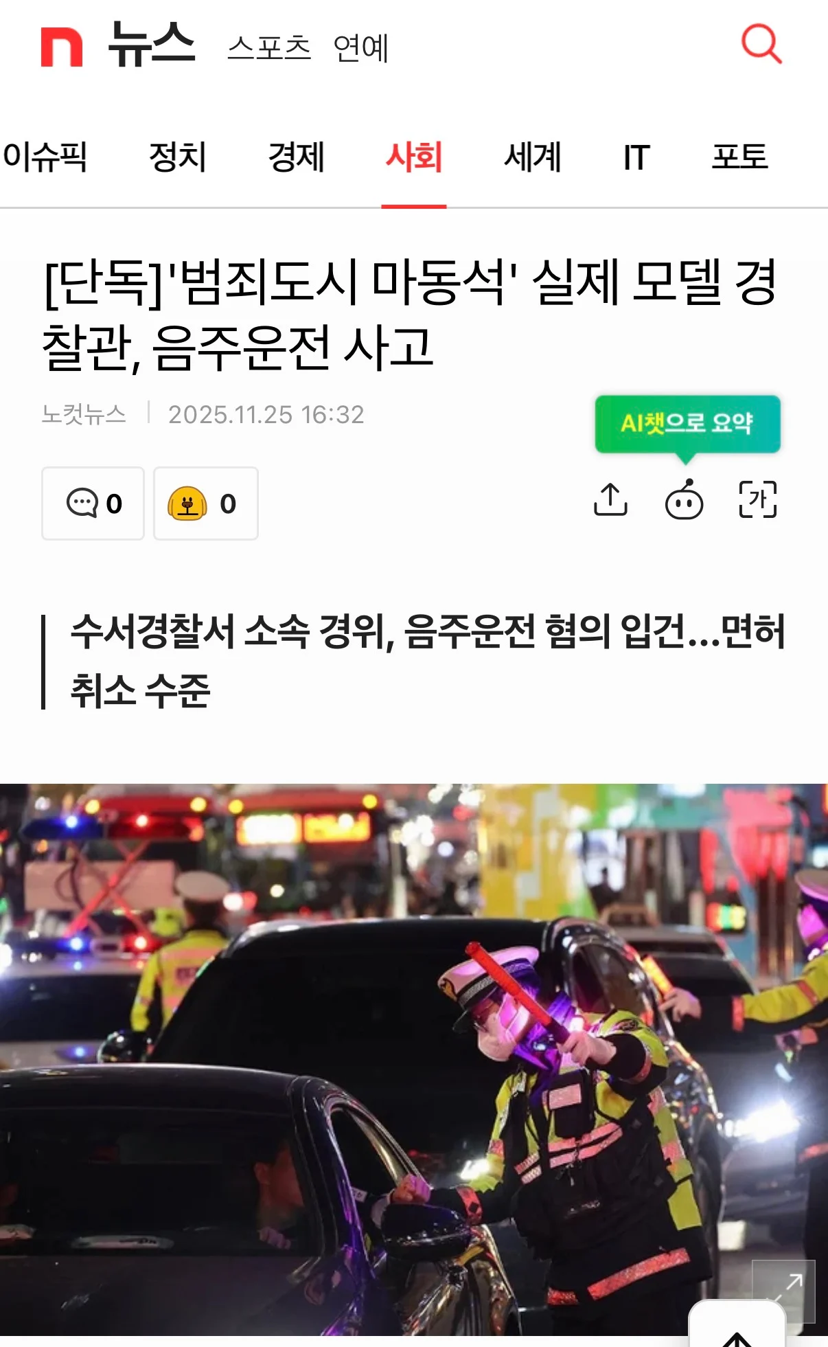 "범죄도시" 마동석 실제모델 경찰관 음주운전