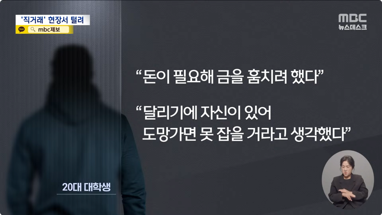 검거된 골드바 직거래 도둑 "빨라서 안잡힐줄 알았다."