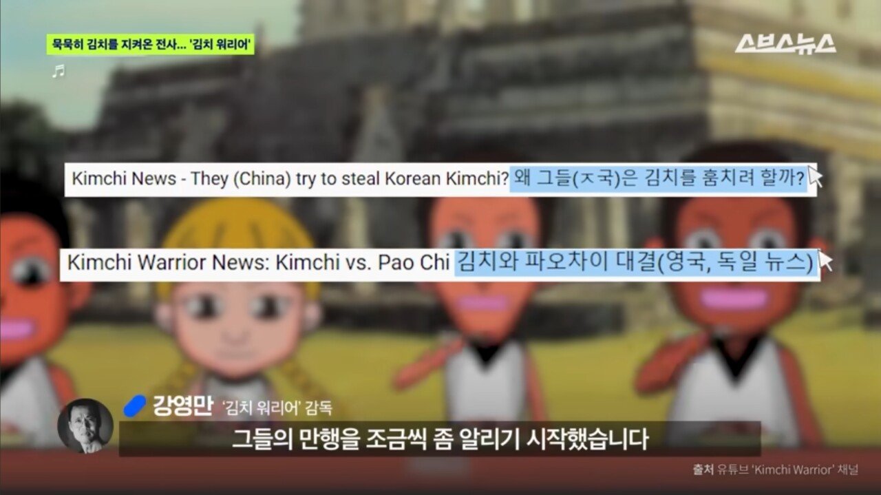 사비로 아직도 제작중이고 최근에 스브스 인터뷰에도 등장해서 중국이 김치 역사 왜곡하려는거 분노에 가득찬다 말씀하심