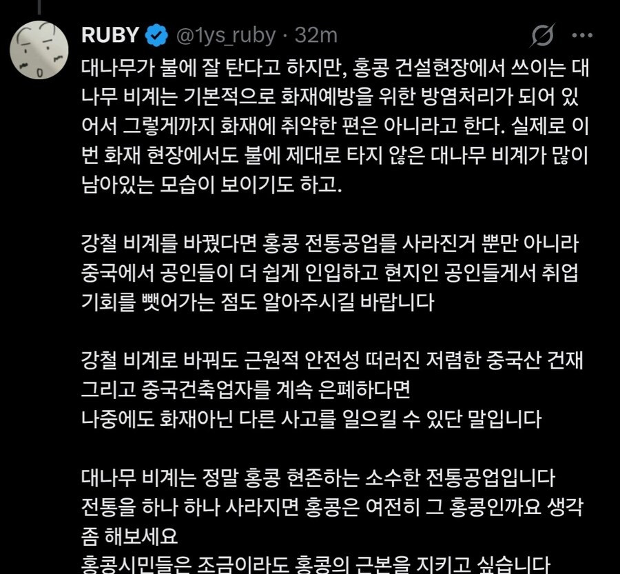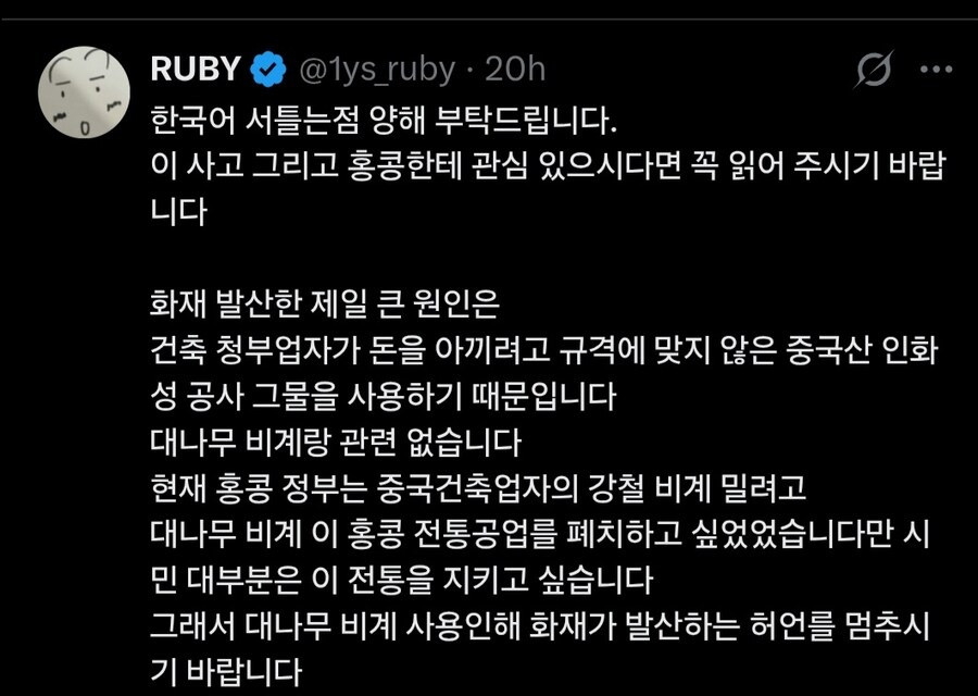 홍콩사람이 말하는 진짜 화재대참사 원인