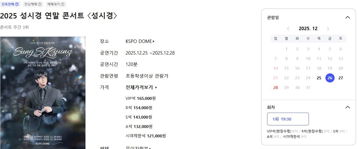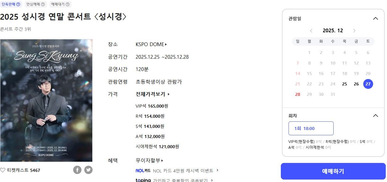 유튜브 반응들을 증명해주는 것 같은 성시경 연말 콘서트 예매 근황
