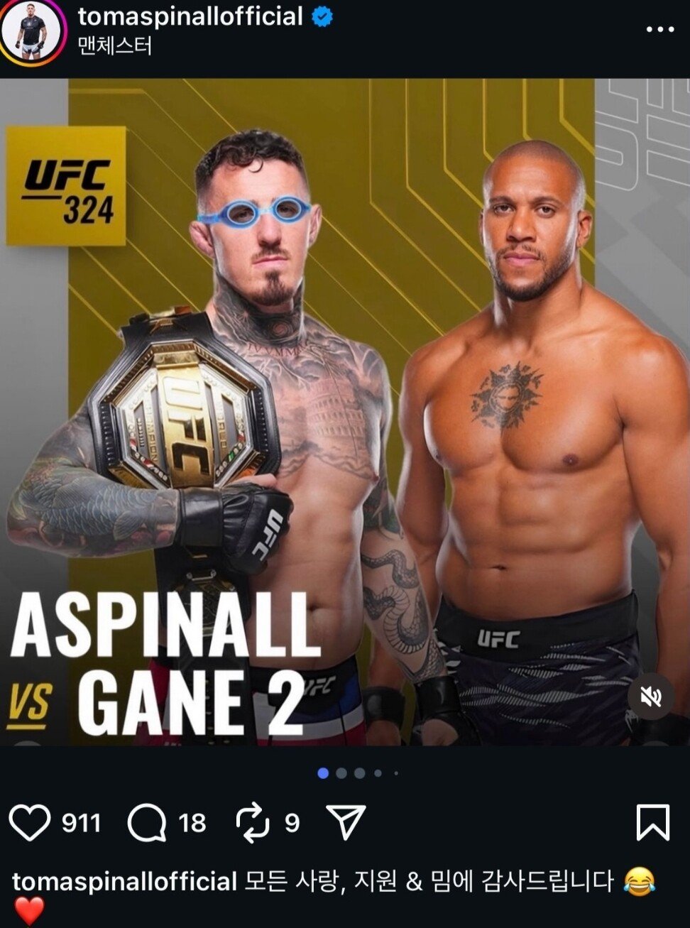 Ufc 321에 눈 찔렸던 톰아스피날이