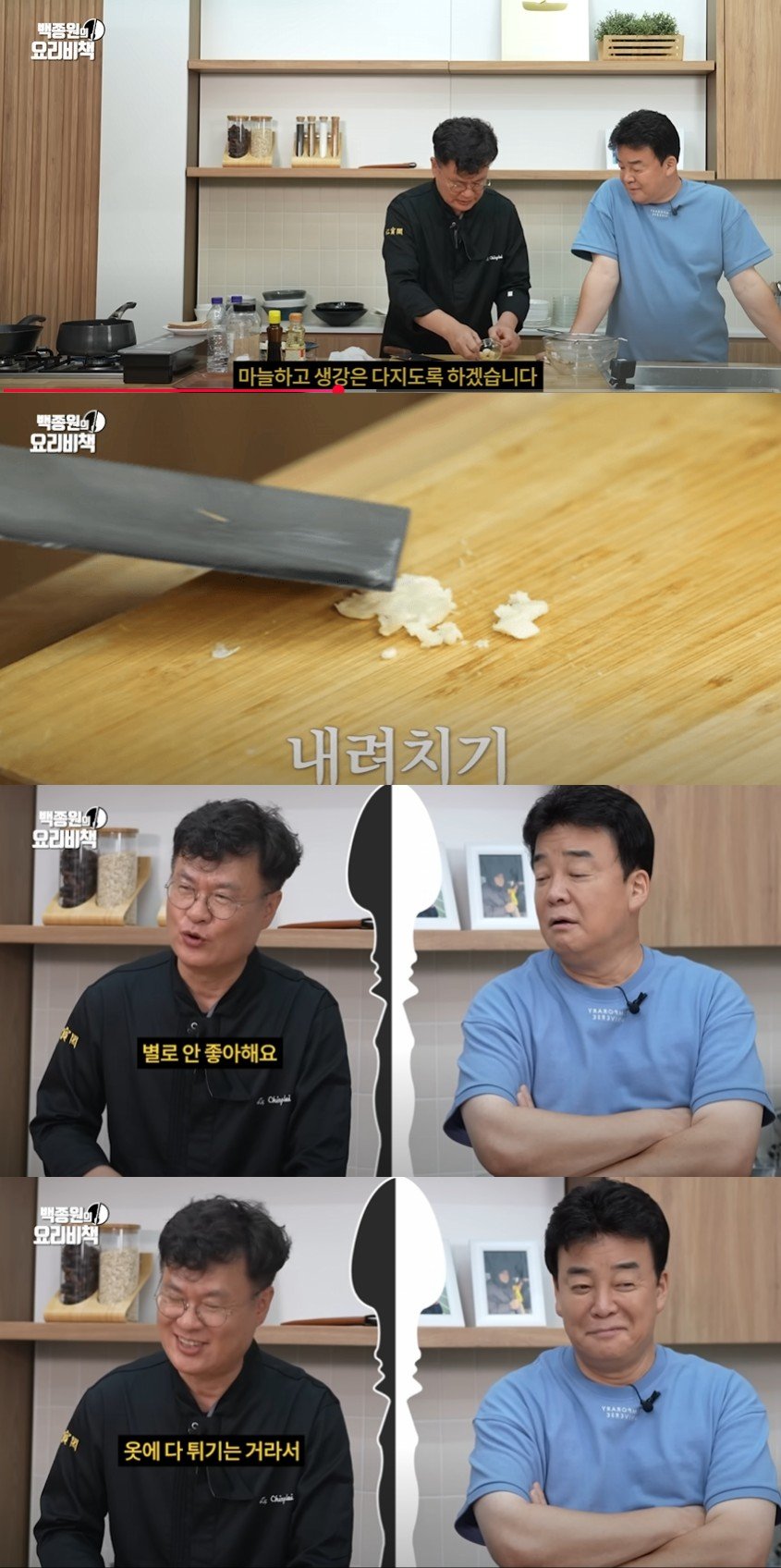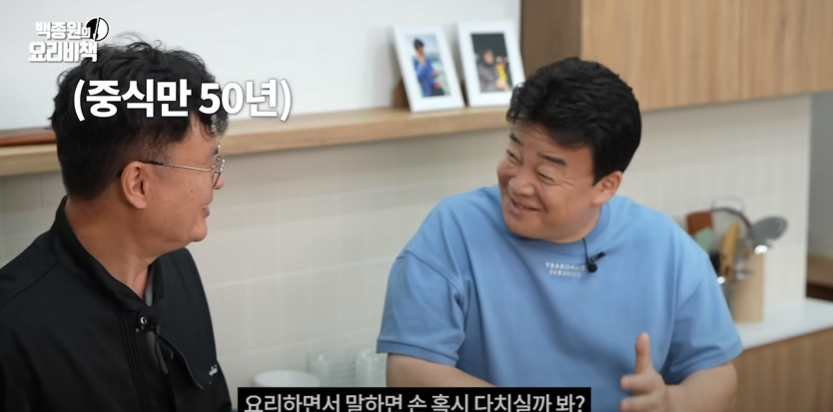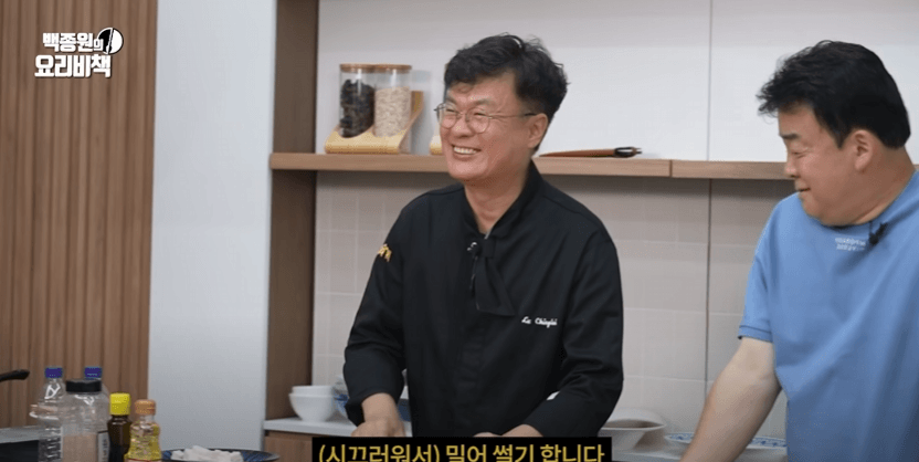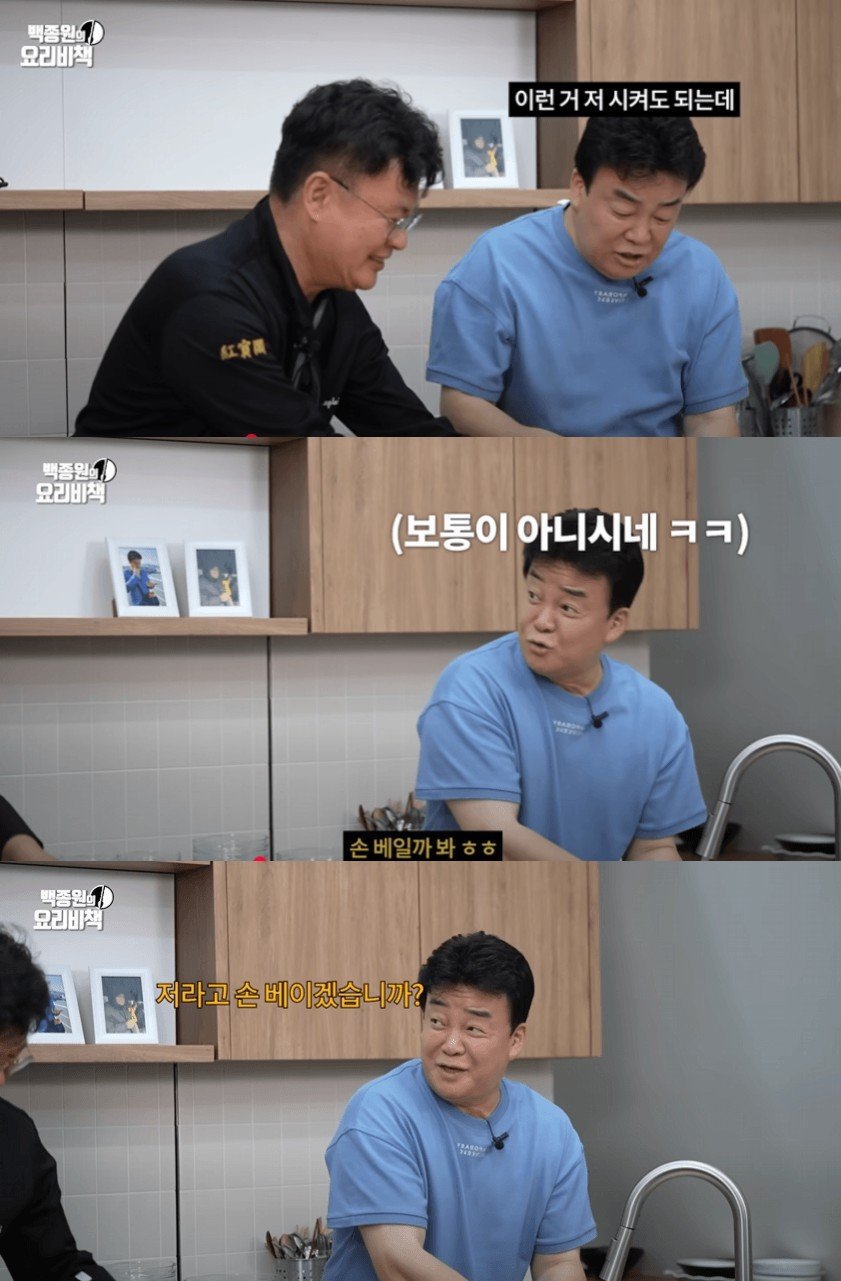 백종원 대표는 "같이 하면 되쥬, 요리하면서 말하면 손 다치실까봐?" 하며 쫄? 을 시전함