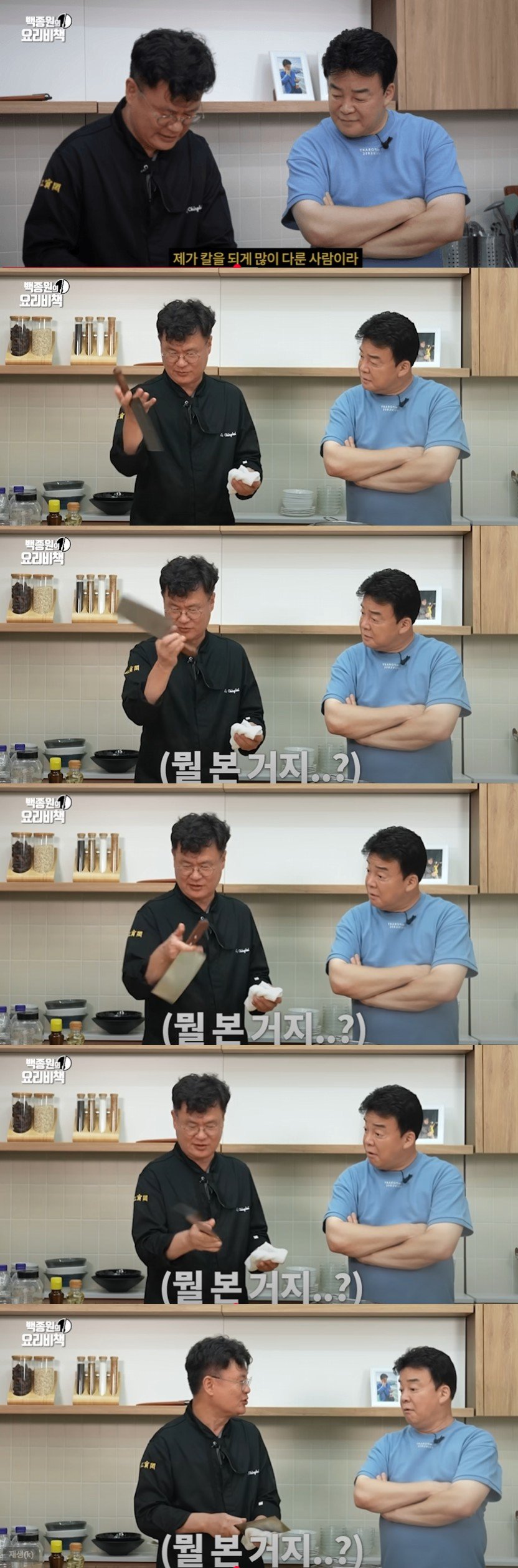 백종원 앞에서 제대로 된 칼 돌리기 스킬을 선보임