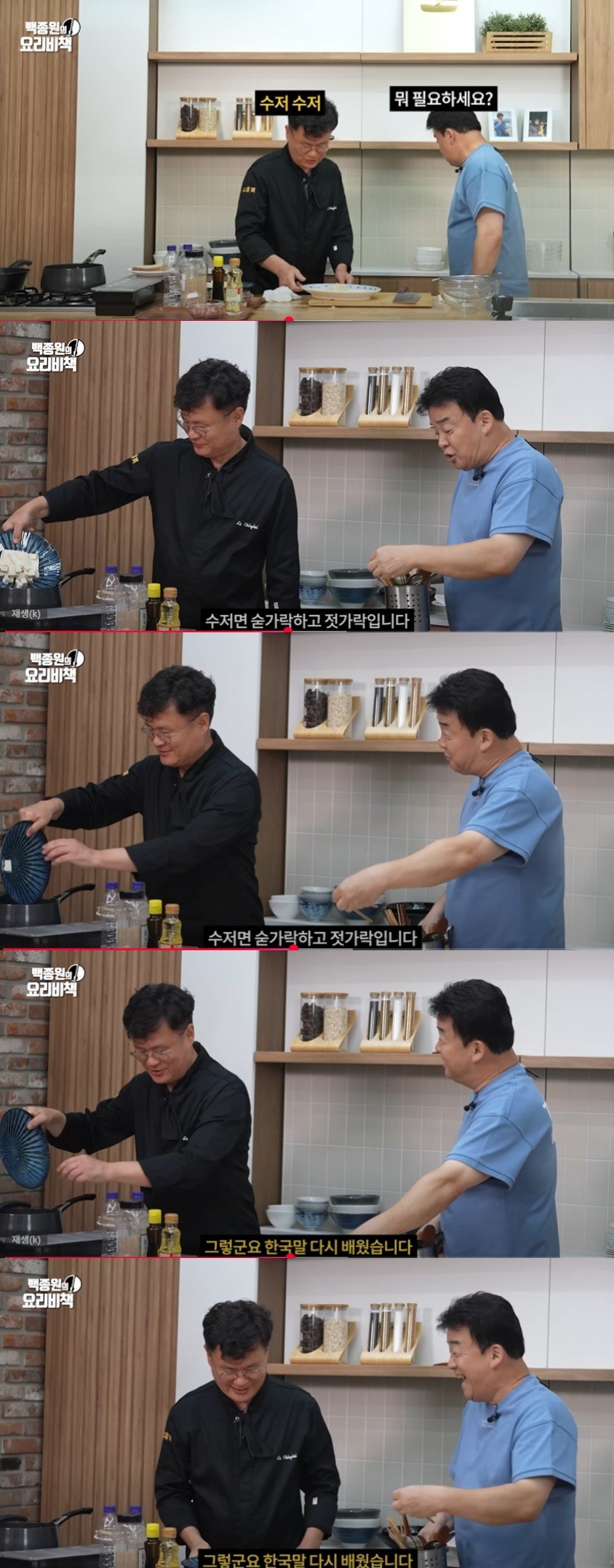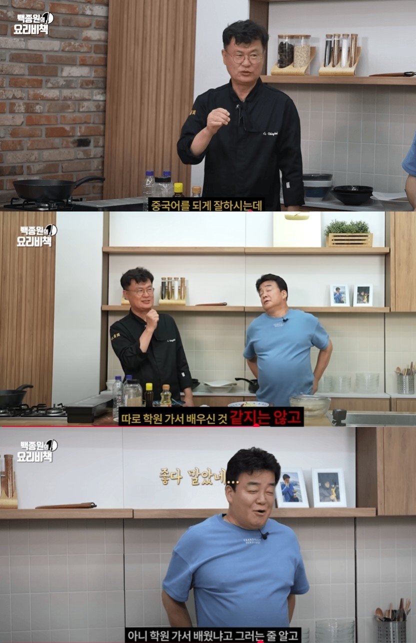 여 셰프님은 백종원이 중국어를 학원에서 배운 것 같지 않다고 하시자 좋다 말았다는 표정의 빽