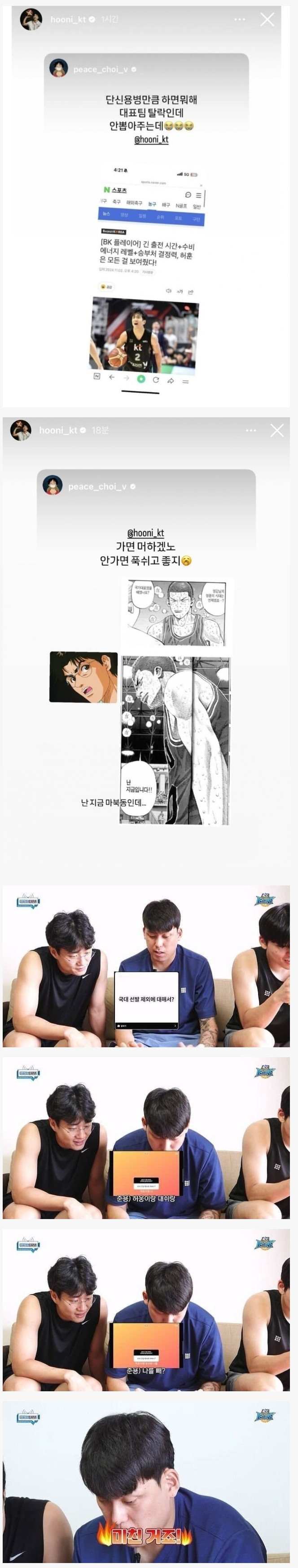 농구 대표팀 제외후 인스타 저격했던 허씨 형제와 최준용