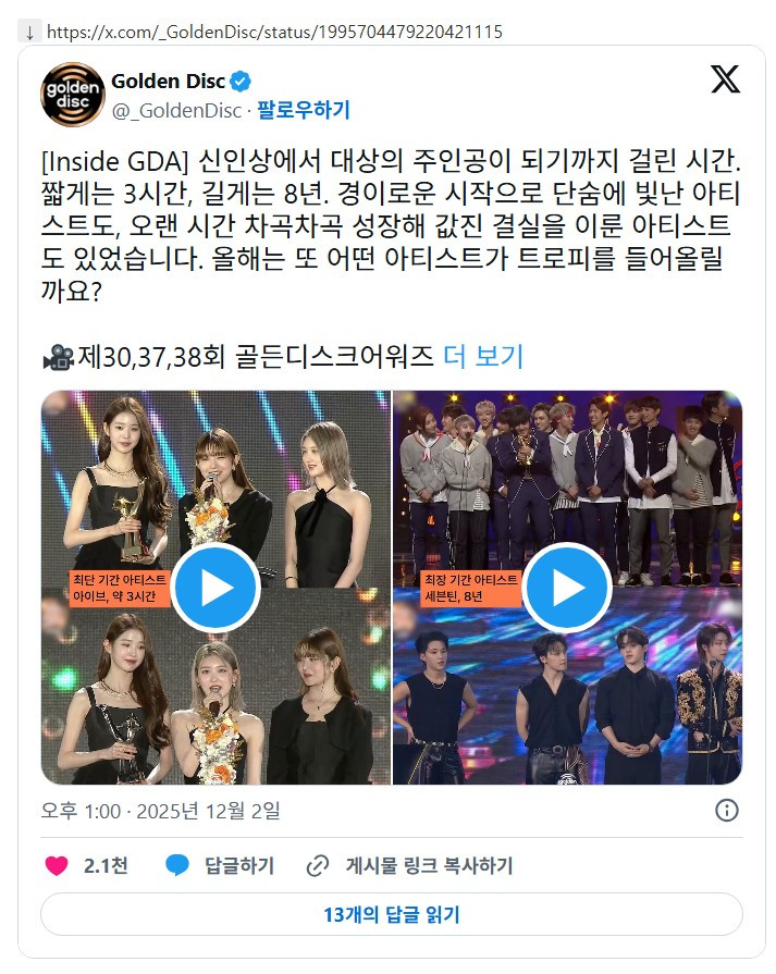 신인상->대상 수상까지 최장기간, 최단기간 아티스트