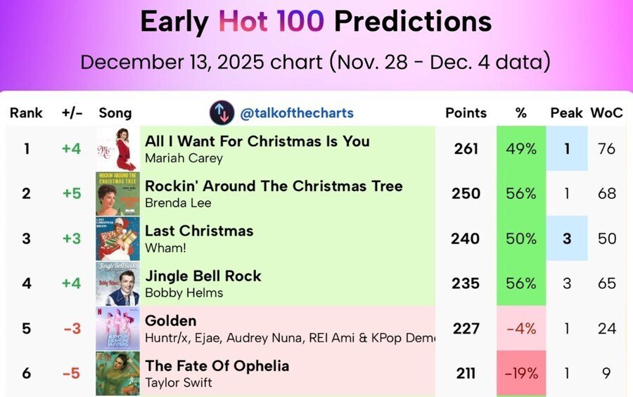 빌보드 케데헌 vs 테일러 1위 싸움 근황