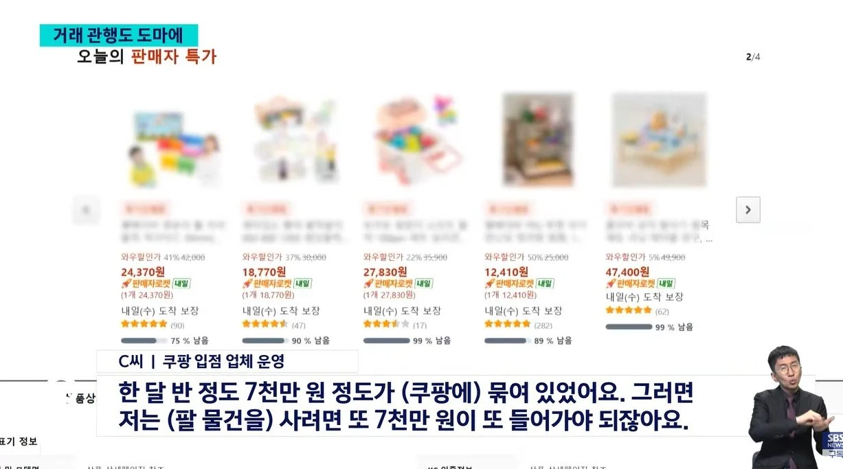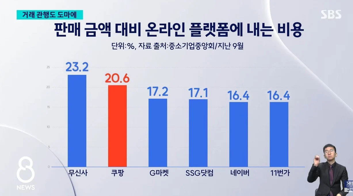 일단 쿠팡에 입점한 업체는 사업이 궤도에 오르면 네이버 쇼핑이나 지마켓등 국내 업체로 입점을 바꾸는 이유가 이것.