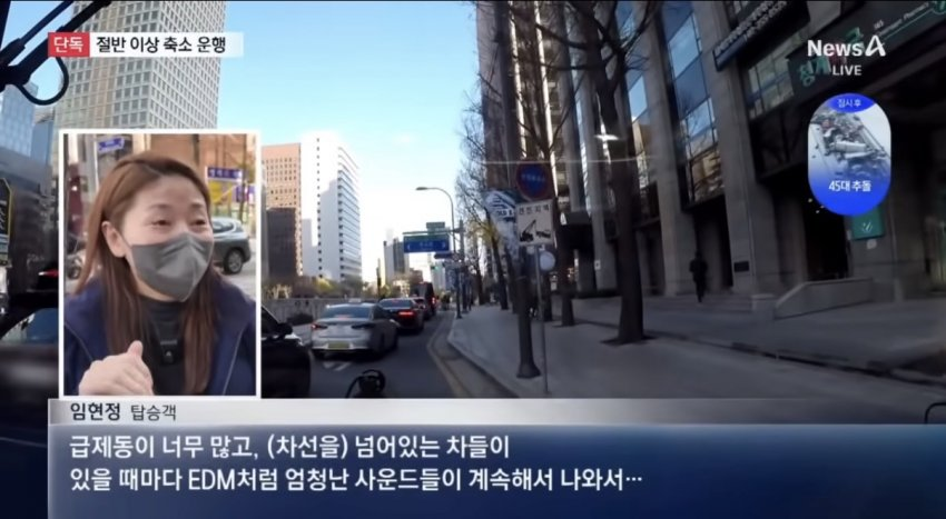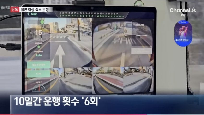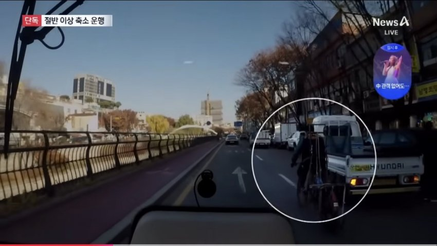 일단 정상 운행중일 때도 ㅈㄴ 느림. 자전거랑 비슷한 속도. 게다가 자전거가 앞으로 끼어드니까 급브레이크 밟아서 기자가 설치해둔 카메라 넘어짐