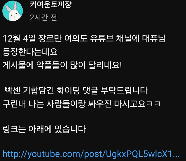 이분 영상도 가관이지만 댓글 보면 엥간한 사이비 집회는 명함도 못내미는 수준