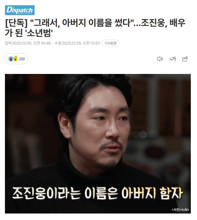 배우 조진웅 디스패치발 폭로 터짐 ㄷㄷㄷ