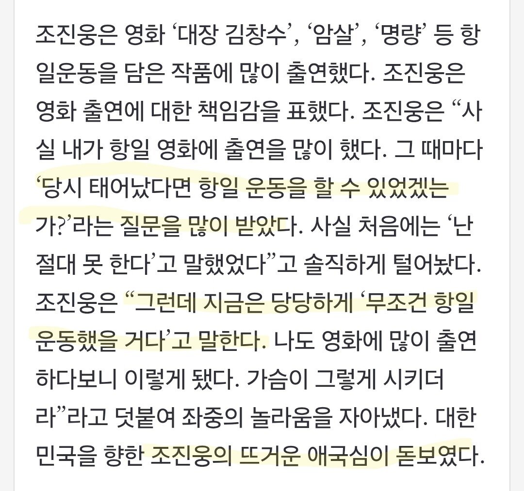조진웅의 애국심이 대단한 이유
