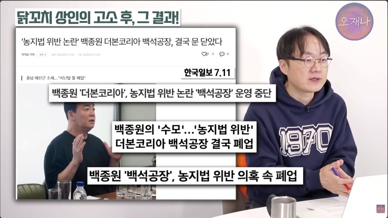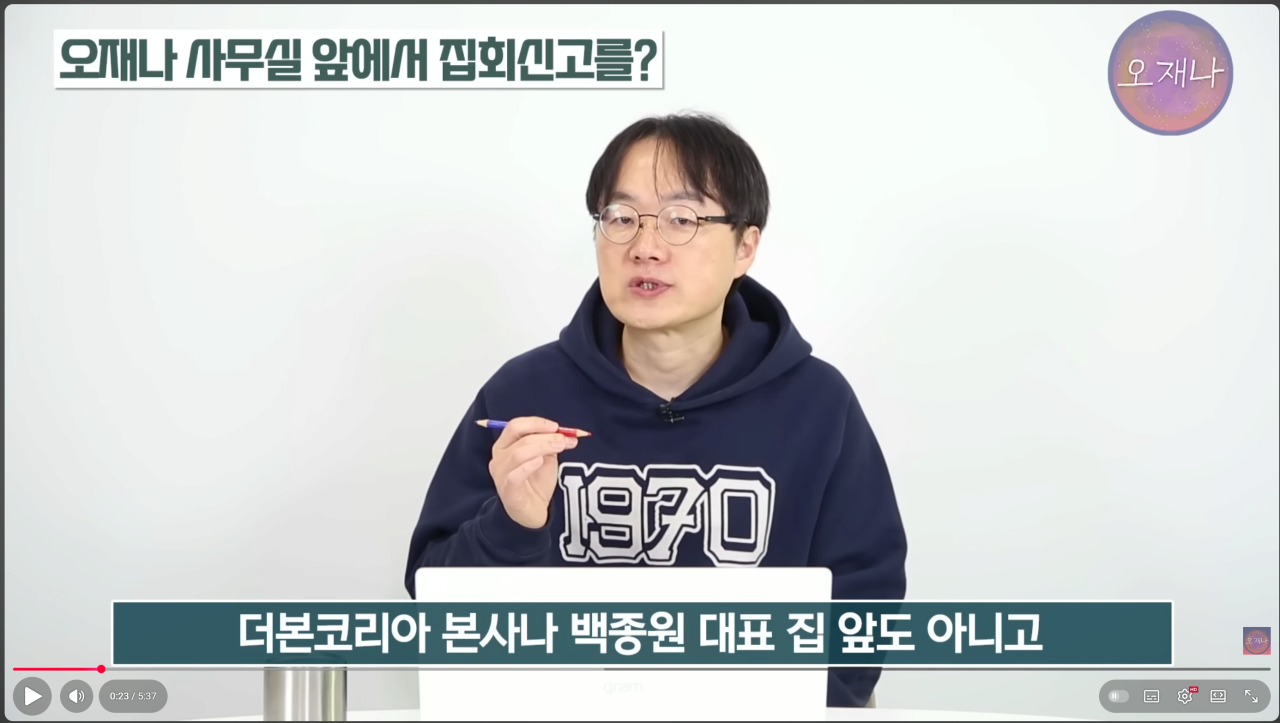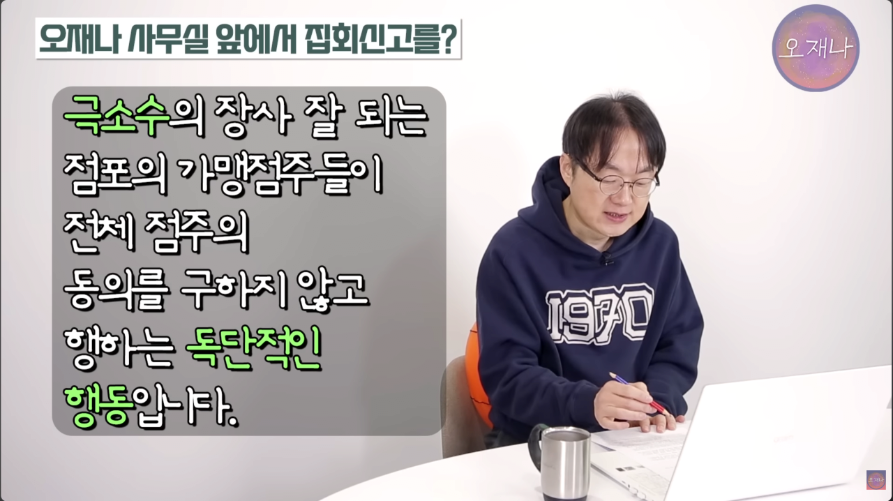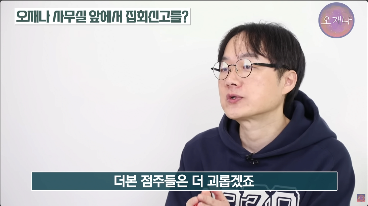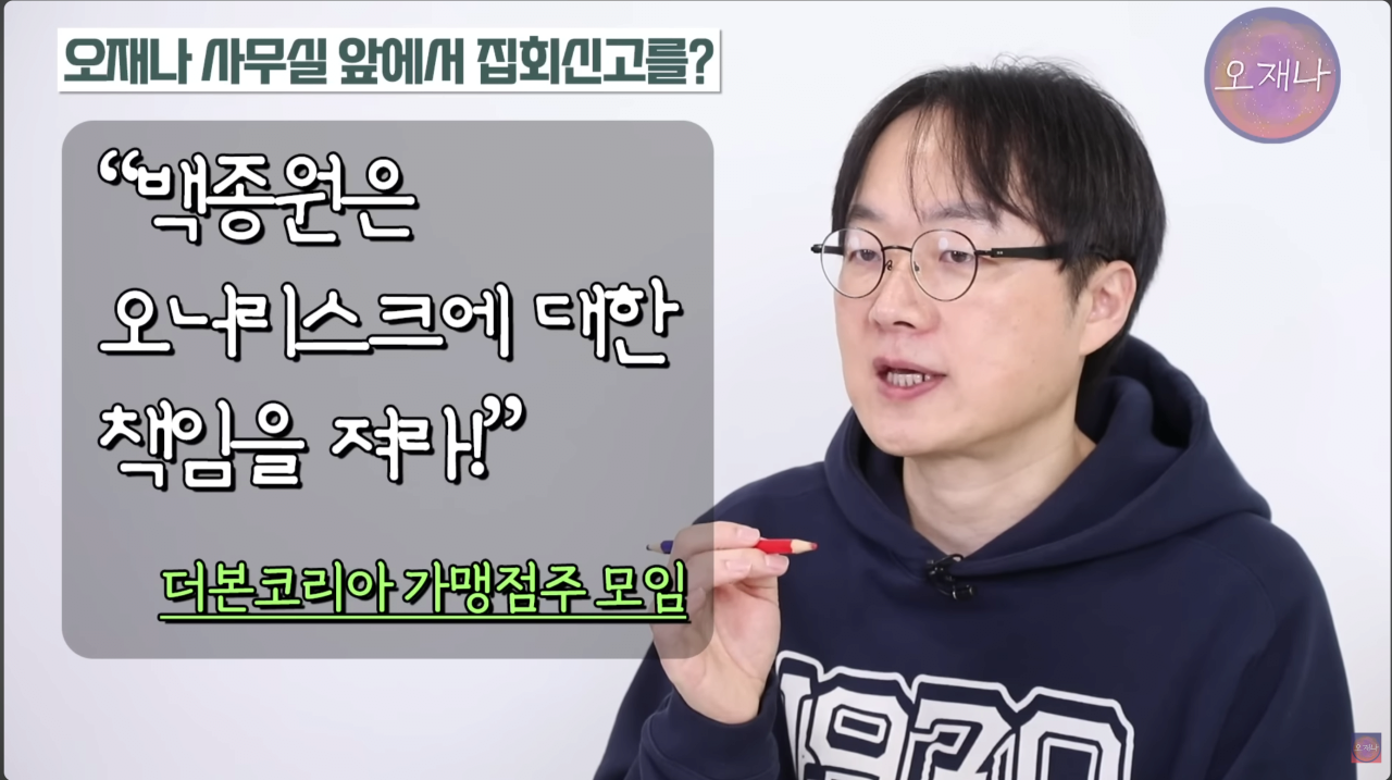 얼마전에 점주들이라면서 더본 코리아 앞도 아니고 오재나 채널 사무실 앞에서 집회 신고 하고