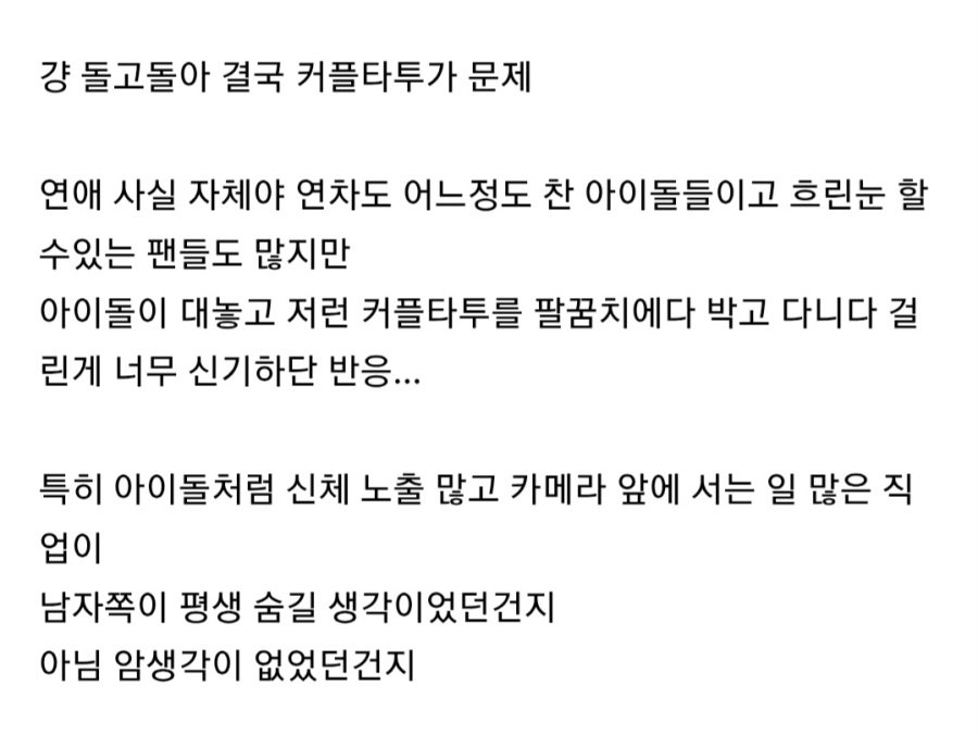 연애는 뭐 그럴수있다치는데 커플타투는 좀 선넘었다 생각하는 의견..