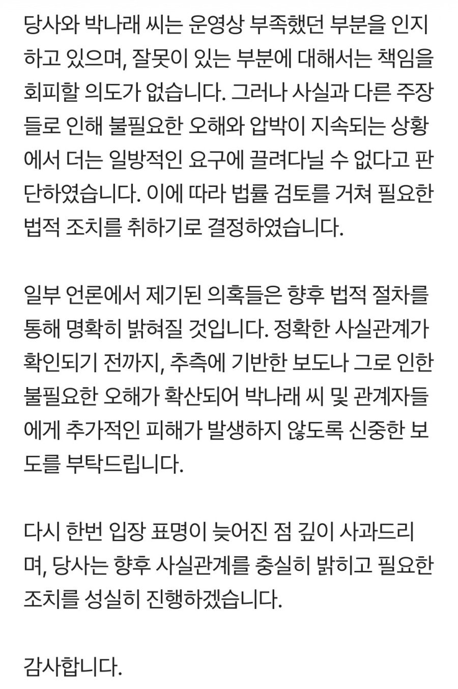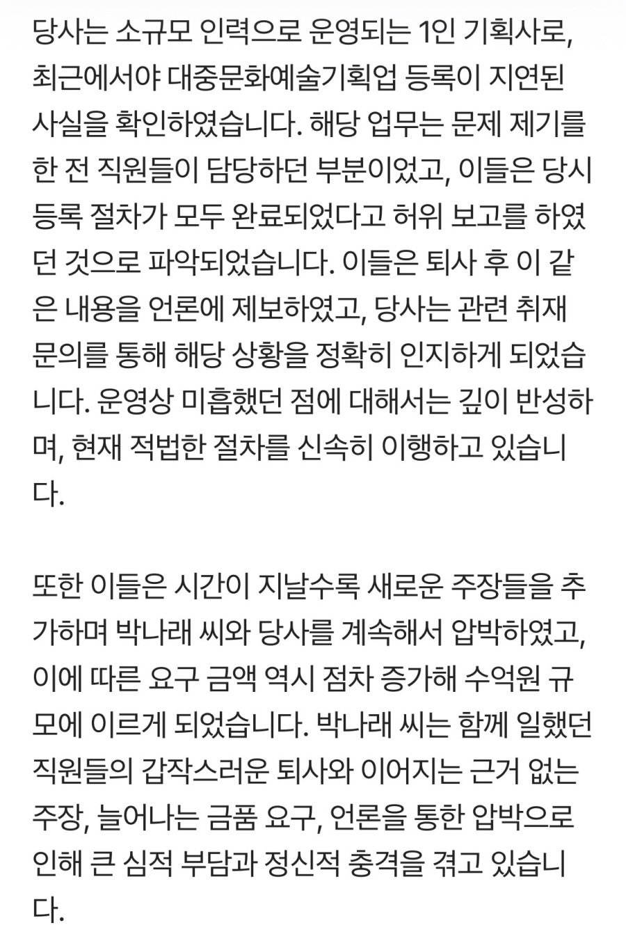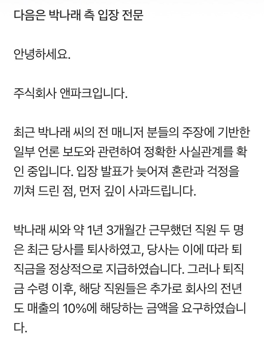 박나래 측 입장문 떴다
