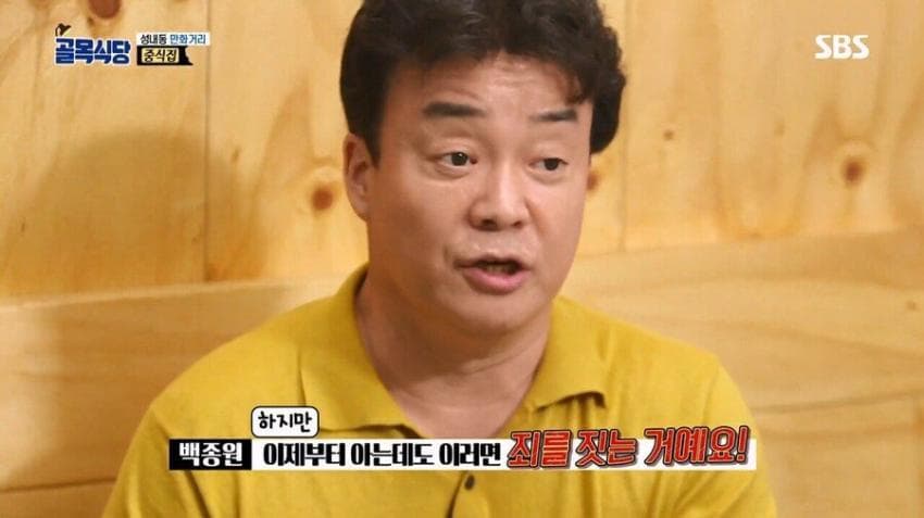 백종원 "아는데도 이러면 죄를 짓는 거에요"
