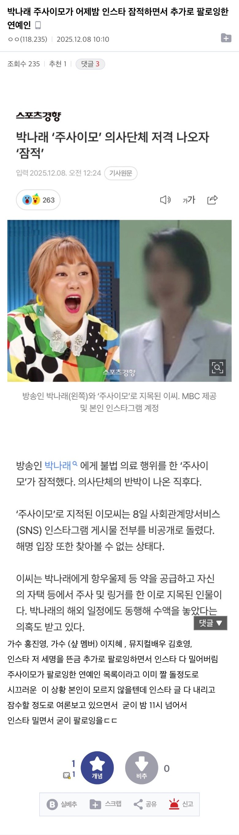 박나래 주사이모가 인스타 추가로 팔로잉한 연예인들
