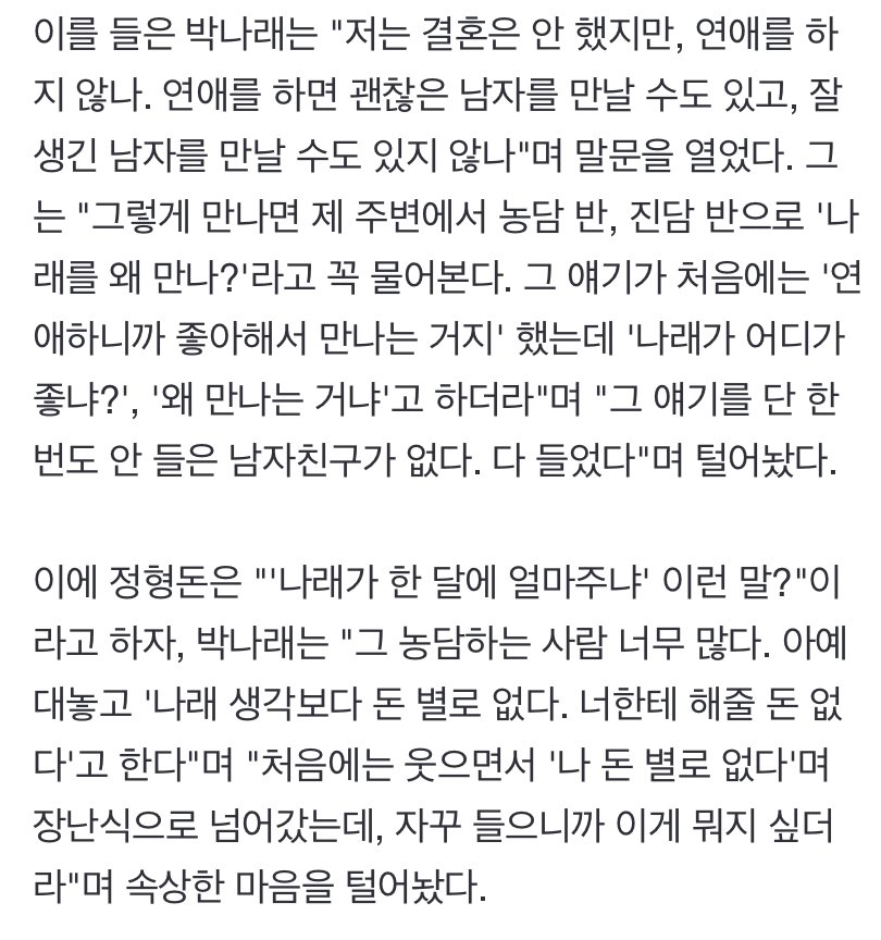 박나래가 남친 사귀면 지인들이 꼭 했다는 질문