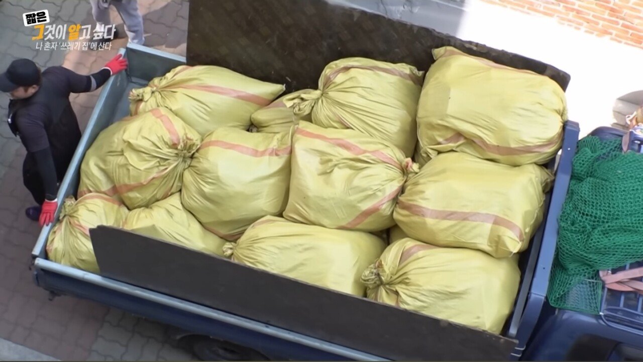 4 년간모아놓은 쓰레기가 트럭 두대분량.