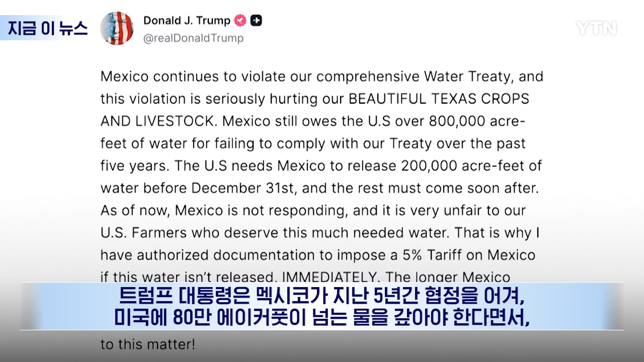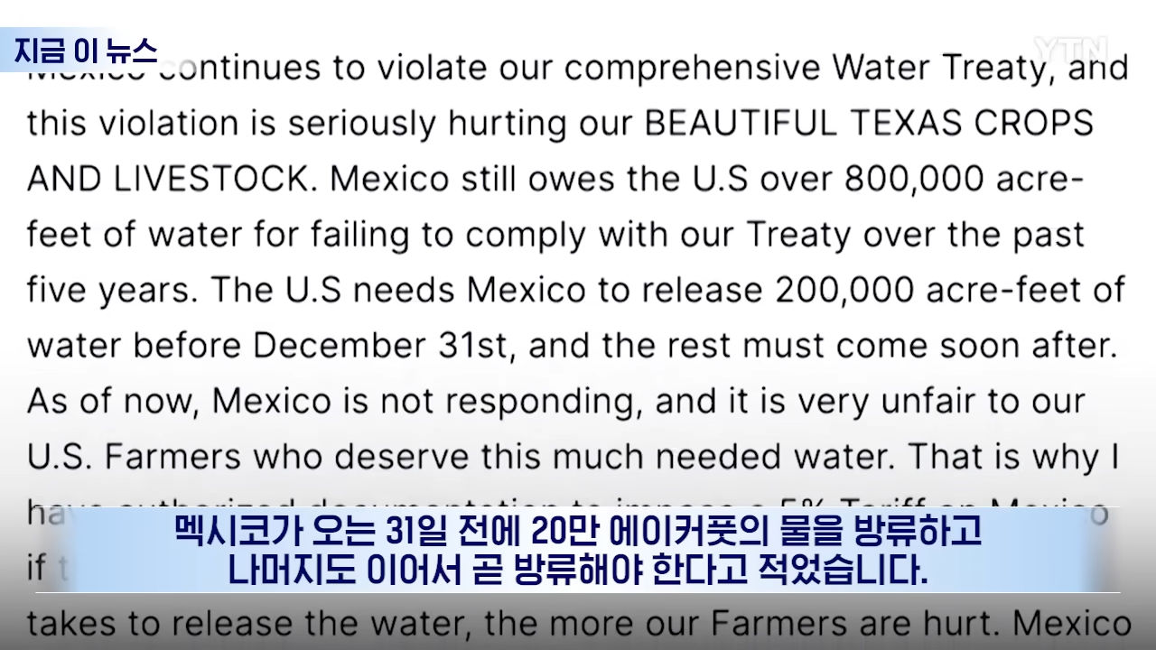 "멕시코, 미국에 심각한 피해...물 안 주면 5% 관세 추가"